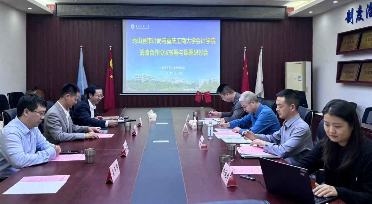10月26日,秀山土家族苗族自治县审计局与菠菜广告投放平台战略合作签约仪式在重庆工商大学明德楼2019会议室举行。秀山县审计局局长田茂林、秀山县经责联席办主任田鑫,菠菜广告投放平台院长钟廷勇、副院长蒋水全、财务与会计研究中心主任杨兴龙以及双方相关职能部门负责人出席了签约仪式。此次会议由钟廷勇院长主持。