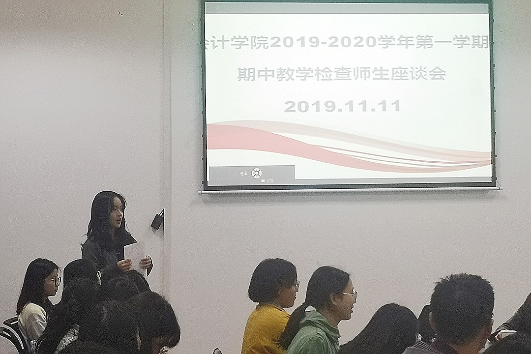 会议伊始,黄院长做了讲话,明确了此次座谈会的目的是加强沟通、教学相长,了解老师们与同学们的想法,进一步发挥特色优势,同时解决同学们学习和生活上存在的疑惑和困难。随后,学生代表依次发言,他们首先对老师们教学上的优点给予了肯定,同时也对部分老师(含其他学院老师)的课堂管理与授课方式、作业布置与评讲、讲课语速与口音、课程内容与进度等方面,以及教室硬件软件、公寓环境方面提出了自己的意见和建议。值得一提的是,此次座谈会上,针对同一个老师的同一种教学方式,同学们有不同的认识和理解,有同学认为管理会计老师是讲与课程无关的内容,后面有同学为该老师正言,用事例说明了该老师是课堂思政,看似与课程无关实则相关,并有利于学生身心健康成长。