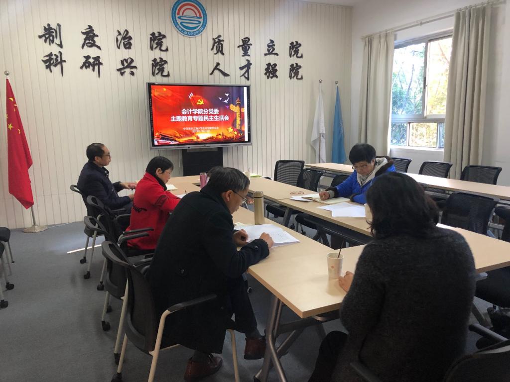 随后,罗惠玉代表班子进行了2018年度民主生活会整改落实情况汇报,从深学笃用习近平新时代中国特色社会主义思想不够、担当精神和斗争精神不足整改情况、党性修养和宗旨观念有所弱化整改情况三个方面进行了整改落实情况情况报告。接着罗惠玉代表班子作检视剖析,从存在的突出问题、存在问题的原因分析、努力方向和具体整改措施三个方面,结合学院主题教育学习研讨、专题调研、问题检视和师生座谈等方面发现的问题作了深入的检视剖析汇报。党委班子成员也逐一进行批评与自我批评。随后,尹建平代表学院班子汇报了2019年专题民主生活会整改方案,班子成员积极发言讨论。